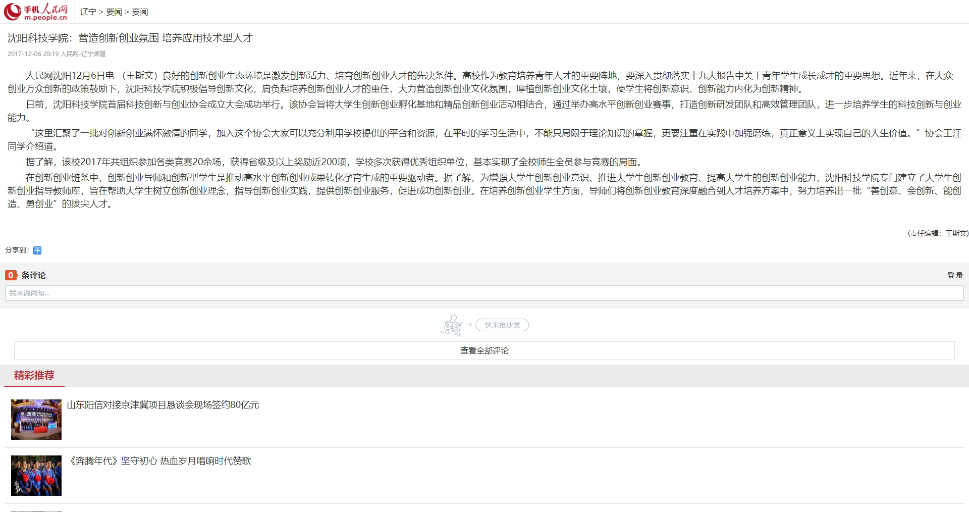 我校创新创业教育受到人民网报道