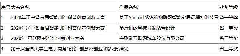 1.参与创新创业大赛获奖情况: