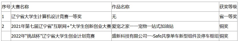 1.参与创新创业大赛获奖情况: