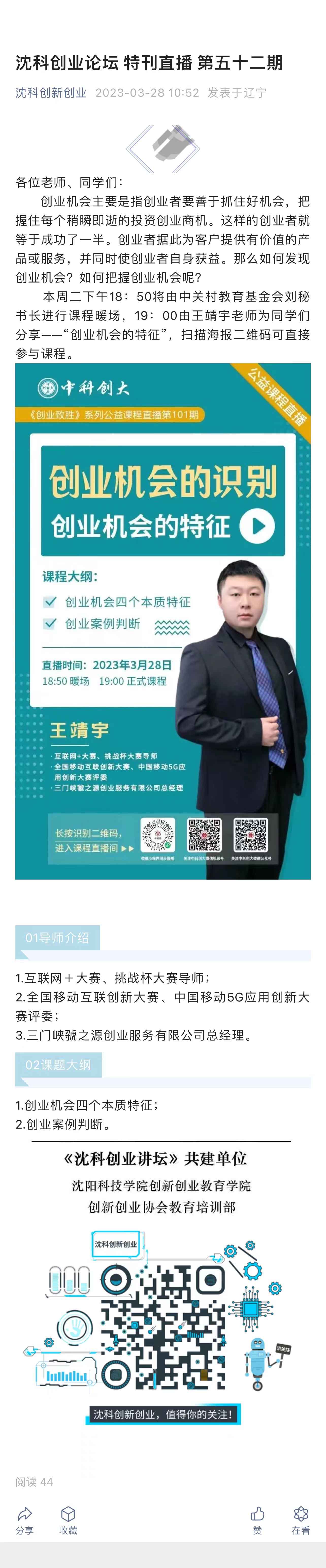 【沈科创业论坛】特刊直播第五十二期