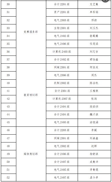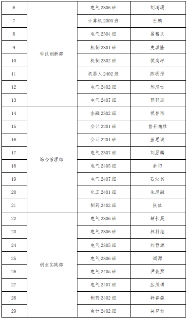 为更好的促进学校专创融合教育事业发展,激发我校精英学子投身于创新创业教育的积极性,经过2024年6月换届竞选演讲、协会投票后确定出会长团成员5名,各部门负责人8名。经过2024年9-10月通过对招新宣传、简历筛选、线下面试后,共遴选出32名新协会成员,现一并公布如下: