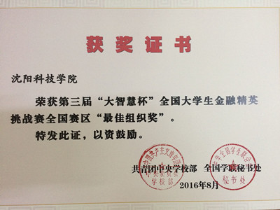 近日,共青团中央学校部、全国学联秘书处联合举办的2016年第三届“大智慧杯”全国大学生金融精英挑战赛结果揭晓。我校学生获得一等奖一项,二等奖三项,三等奖七项,伟德国际1946荣获全国赛区最佳组织奖,蒋明儒老师荣获优秀指导教师奖。