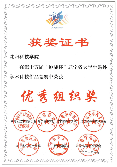 9月,团省委、省教育厅等7家单位联合公布了2021年第十五届“挑战杯”辽宁省大学生课外学术科技作品竞赛结果。在辽宁省参赛的82所高校中,我校团体总分排名第25位,在民办高校中排名第2位,学校荣获“优秀组织奖”,有七位老师获得“优秀指导教师”称号。