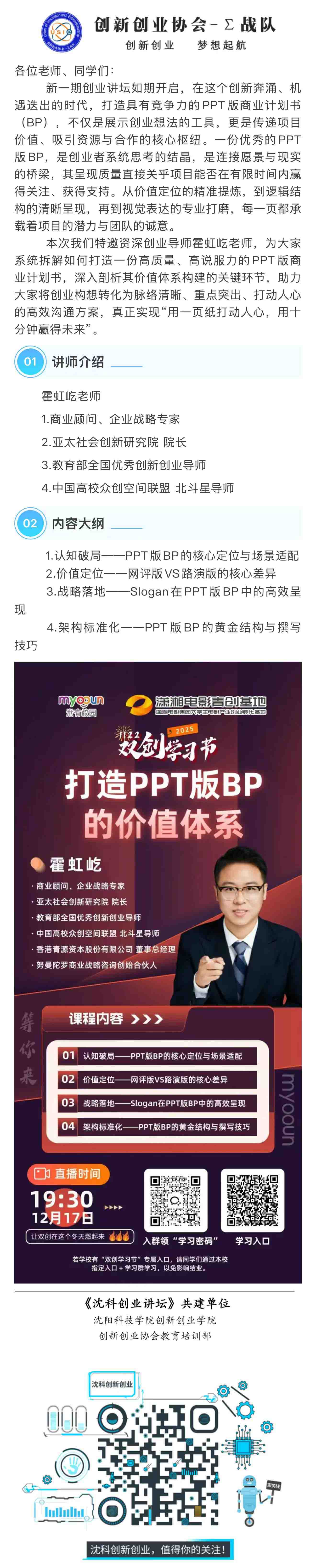 沈科创业讲坛
