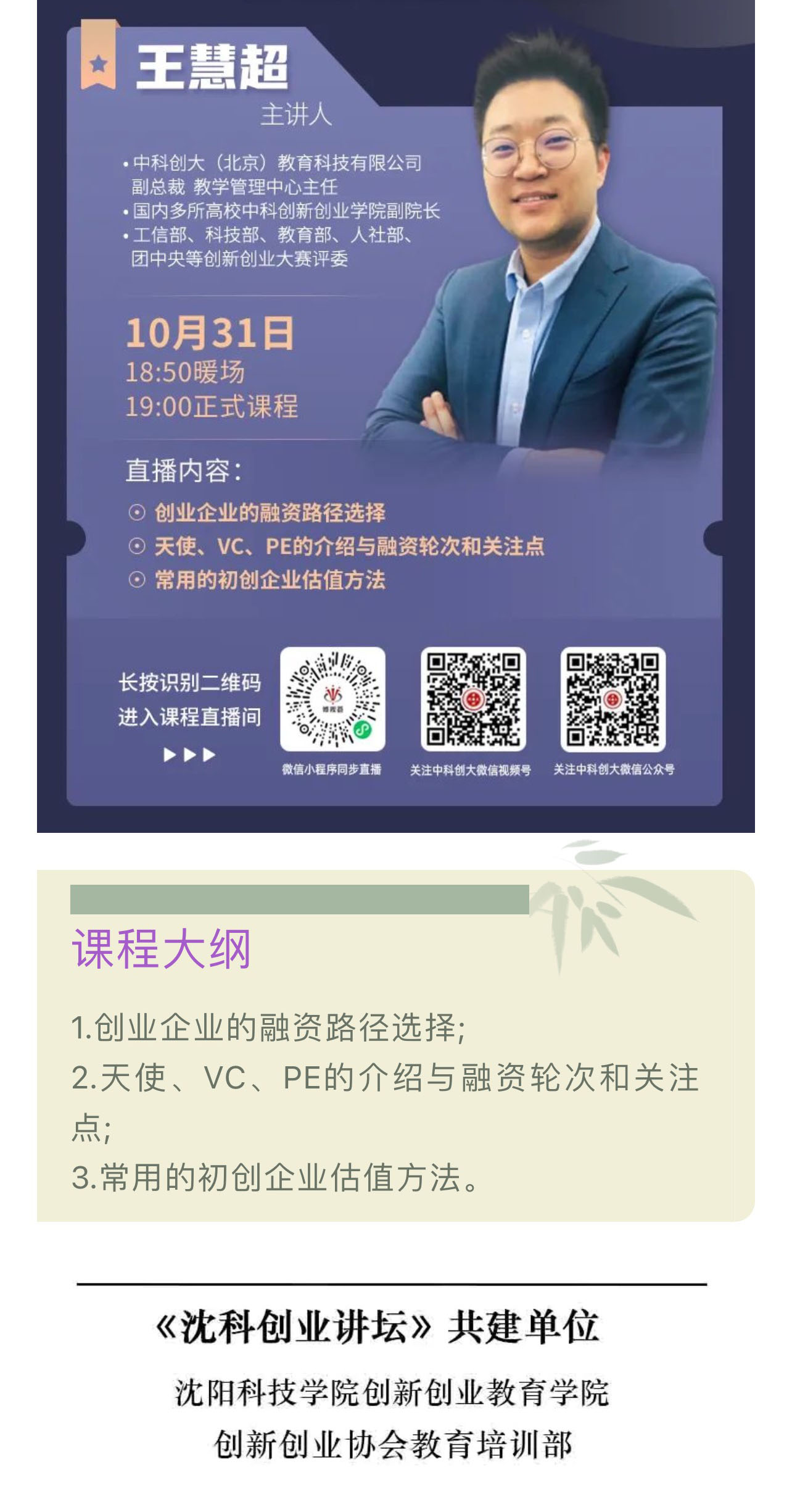 上条:【沈科创业论坛】特刊直播第六十五期